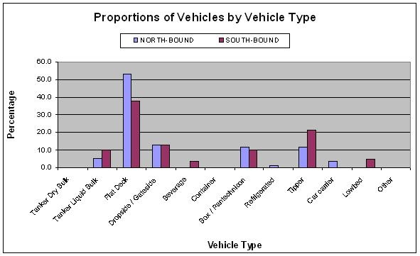 The highest types of vehicles recorded were flatbed vehicles (53% northbound and 38% southbound).