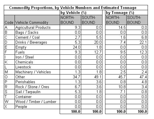031- Commodity Proportions by Vehicle Numbers and Estimated Tonnage.031-R61-Port Shepstone-Port Edward