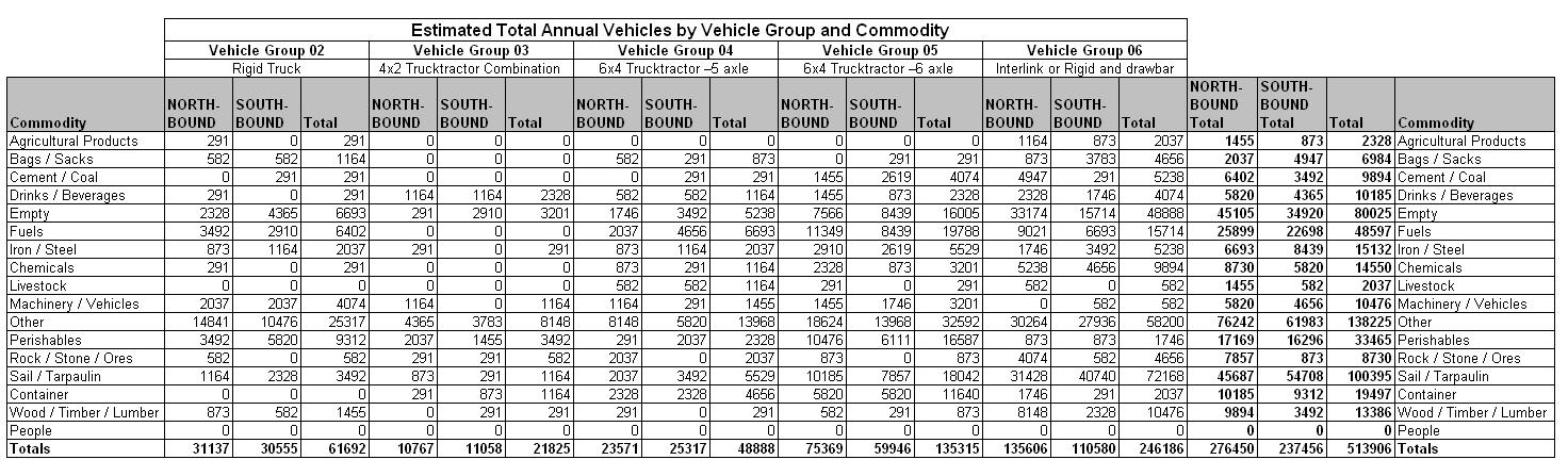 The total number of freight vehicle movements is estimated to be about 514 000 pa with an AADTT of about 1710.
